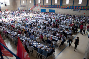 Martín Llanas da las gracias a todos los socialistas de la provincia que se dieron cita en Zuera en la fiesta de la Rosa.