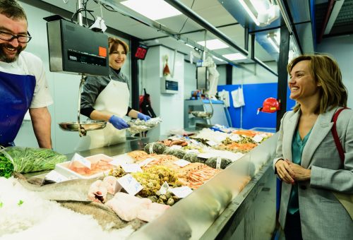 La candidata socialista a la Alcaldía de Zaragoza ha visitado hoy a los detallistas del Mercado Central y les ha trasladado su compromiso con los mercados como elemento generador de vida en los barrios