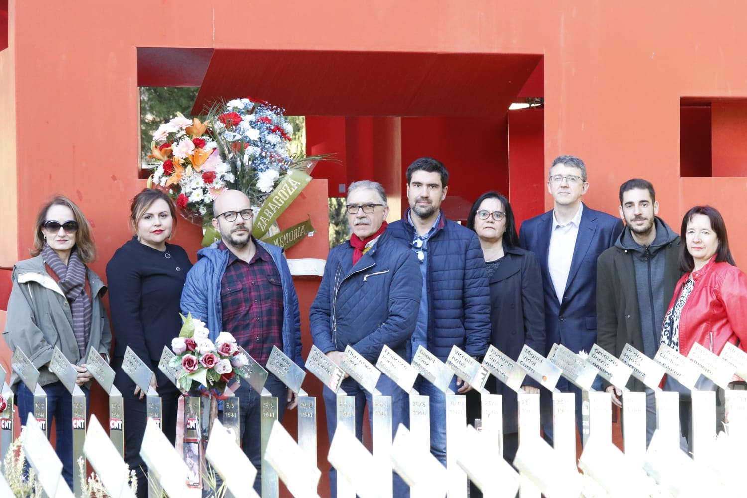 Zaragoza, 24 de octubre de 2019.- Una representación del comité electoral del PSOE Zaragoza ha rendido homenaje esta tarde a las víctimas del franquismo. La cita ha coincidido con la exhumación del dictador, Francisco Franco, del mausoleo del Valle de los Caídos. Los socialistas de la provincia de Zaragoza han depositado varios ramos de flores en el memorial del Cementerio de Torrero, en Zaragoza, que recuerda a los represaliados y asesinados durante la dictadura y a los miles de españoles que tuvieron que exiliarse.