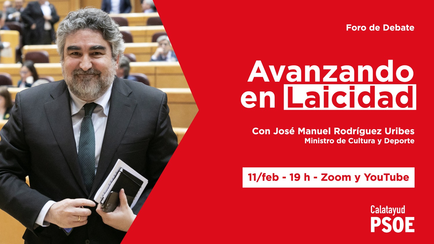 Contaremos con la presencia de José Manuel Rodríguez Uribes, Ministro de Cultura y Deporte del Gobierno de España y Secretario de Laicidad del PSOE.
